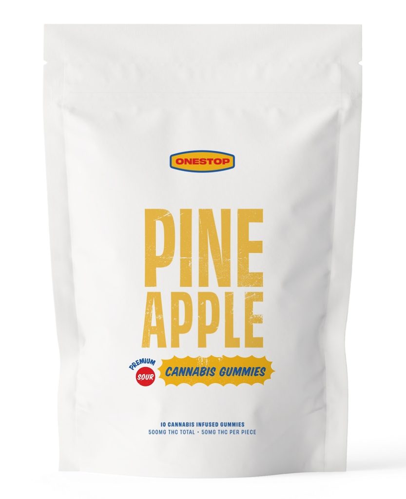Buy One Stop – Sour Pineapple Gummies 500MG THC at MMJ Express Online Shop