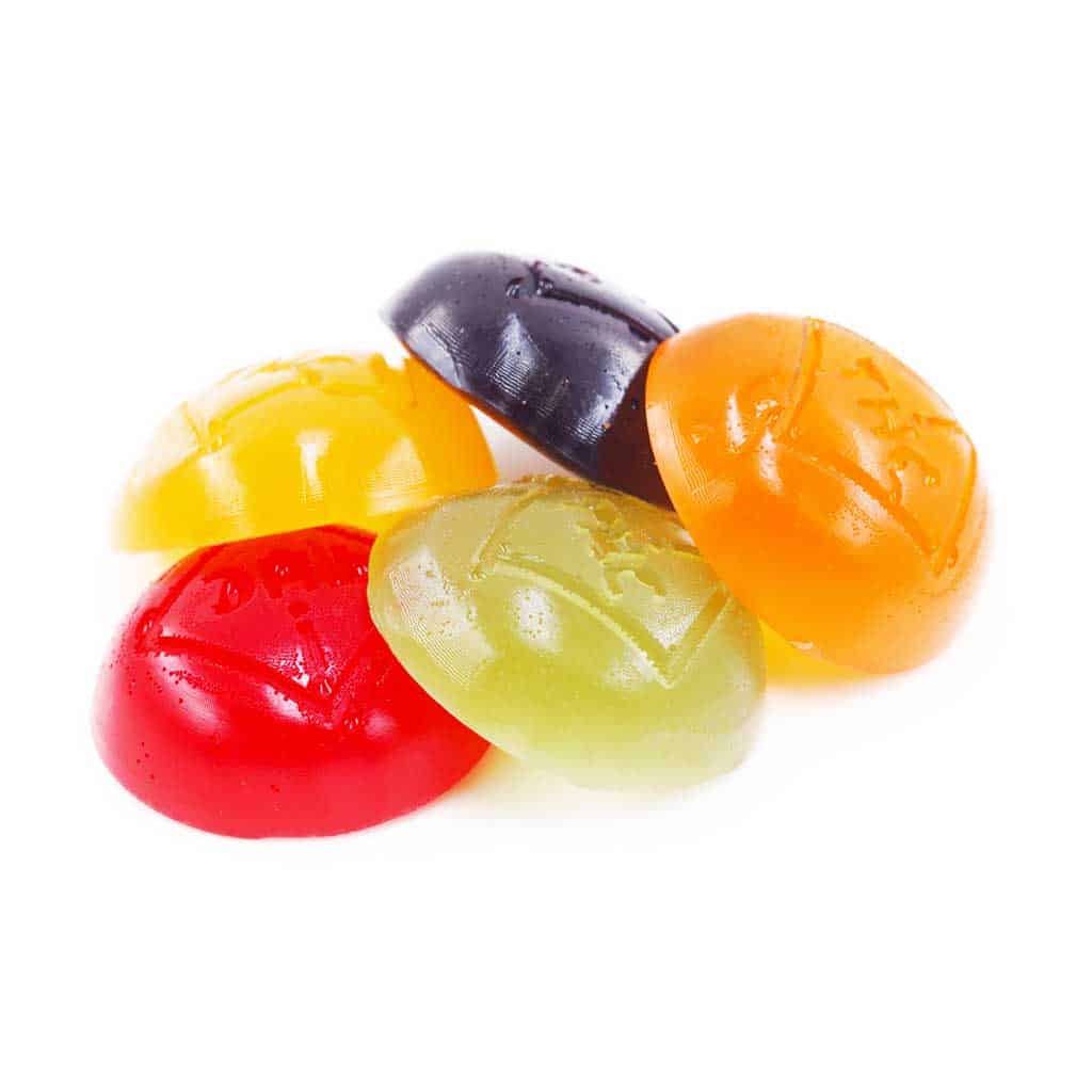 Ingredients: Sugar, sorbitol, corn syrup, fruit juice, gelatin, pectin, natural flavour, beeswax, natural vitamin E